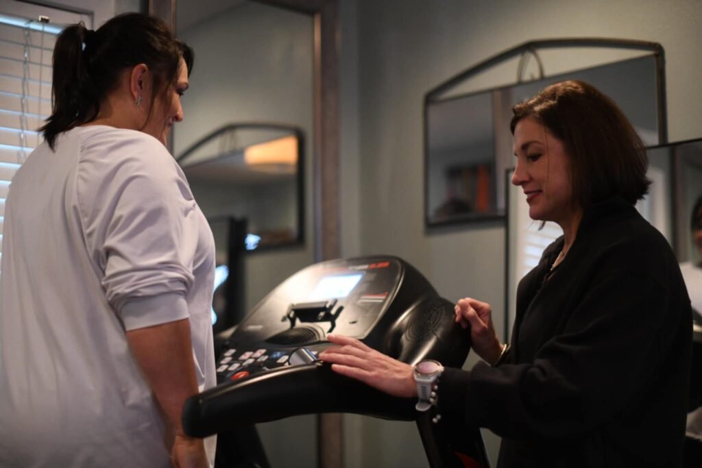 Train safely with Kim’s guidance, real-time feedback, proper form, accountability and steady motivation.