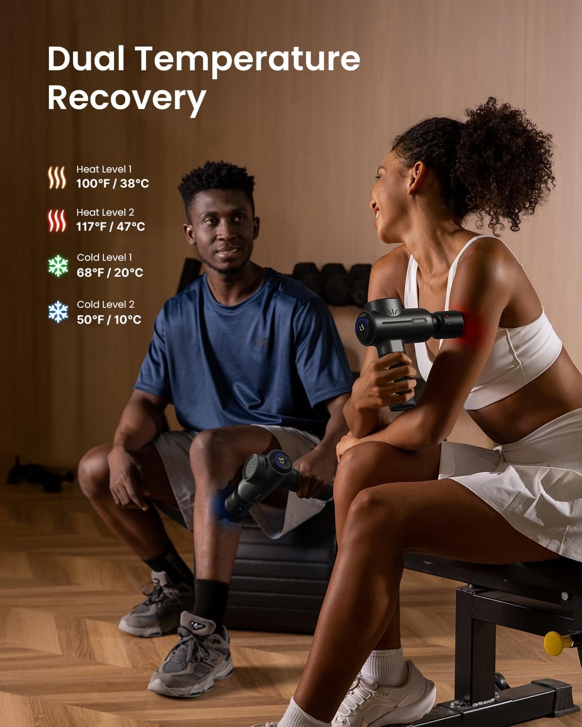 • Heat and cold therapy in one tool – Switch between warming and cooling modes on the massage gun with heat and cold to match what your muscles need that day.