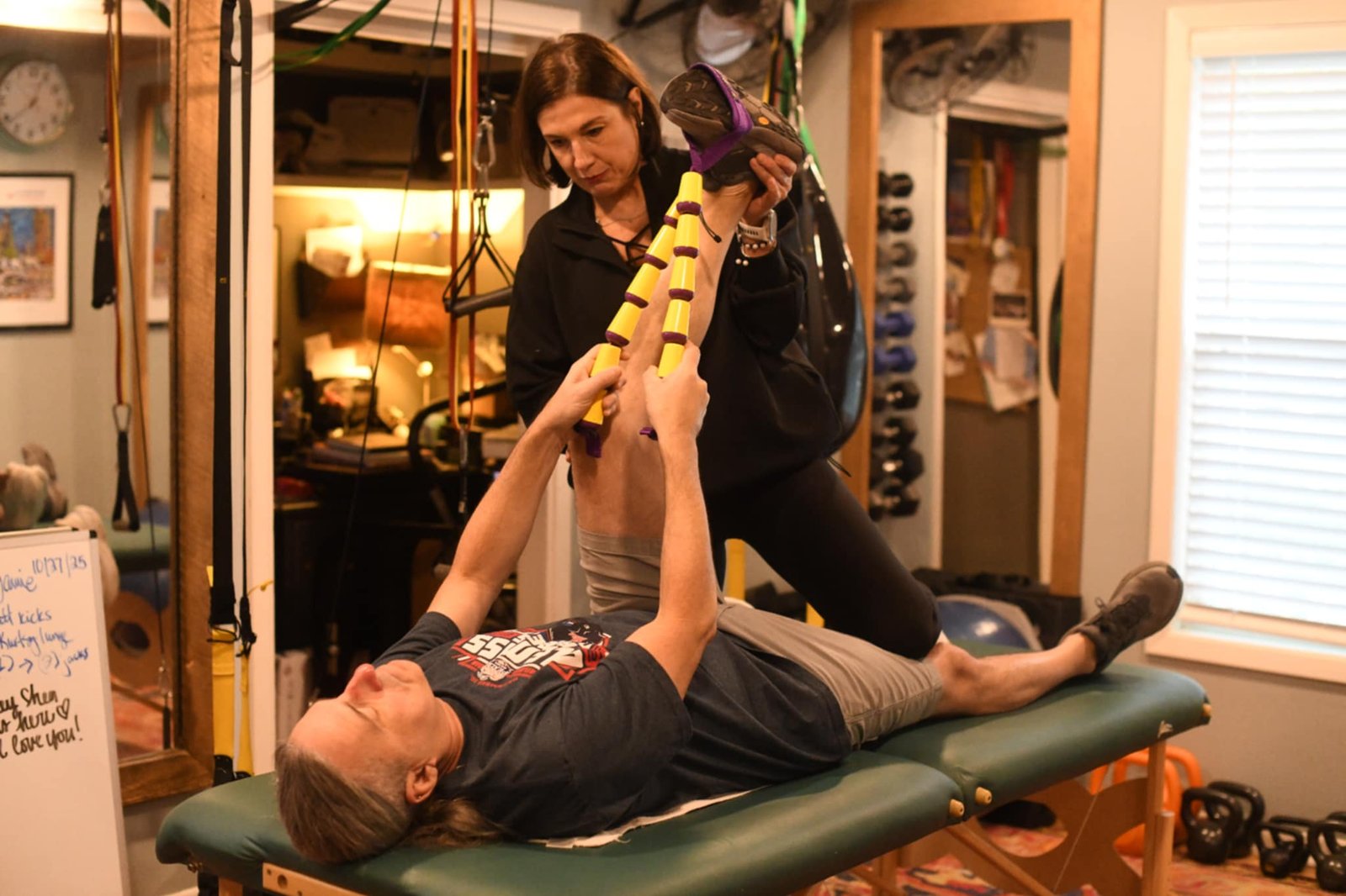 No special gear is required. Kim designs sessions around what you have—gym, home, or minimal equipment. You can train in person, online, or hybrid, and receive simple at-home exercises or downloadable PDFs to stay consistent.