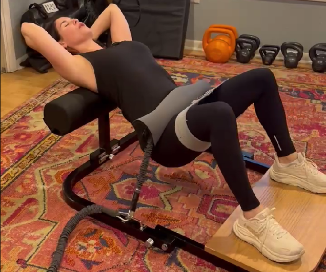 Starting this workout with hip thrusters helps activate the posterior chain, preparing your body for better alignment and strength during the rest of your session.